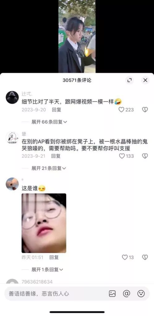抖音70万网红眼镜萌妹妹妹别哭被金主训练视频流出